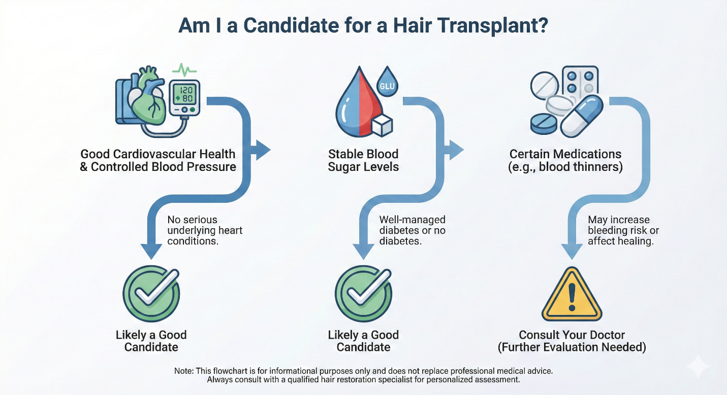 The Bottom Line: Don't assume your medical history excludes you from restoring your hair. If your condition is stable and controlled, we can likely proceed safely.